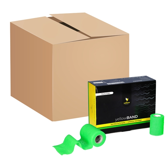 - Bandaż kohezyjny w kolorze intensywnie zielonym i rozmiarze 7,5 cm x 4,5 m, zapewnia doskonałą jakość i wszechstronne zastosowanie.