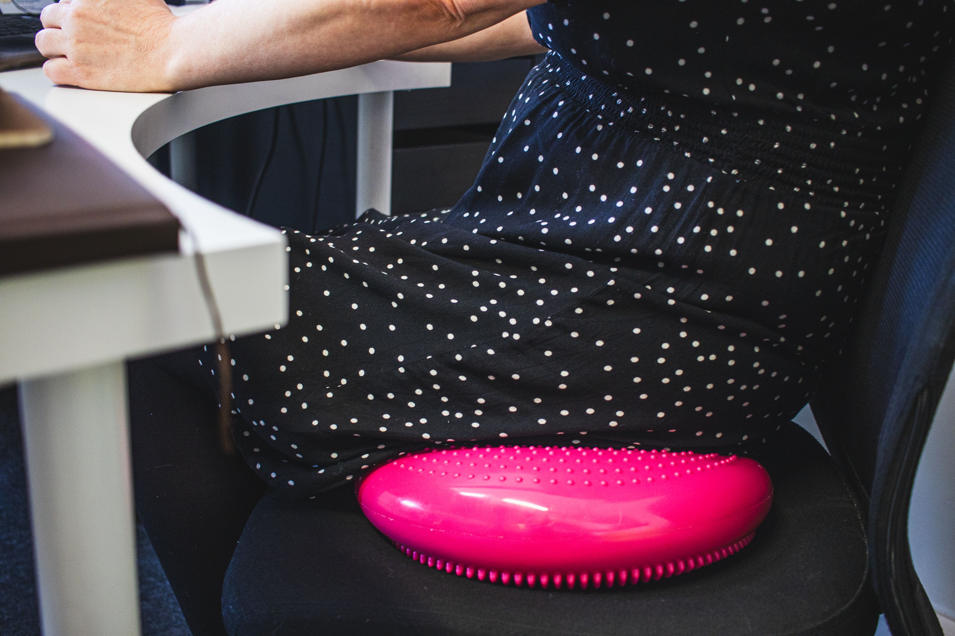 - Poduszki sensomotoryczne: Jest to szczególnie przydatne dla osób prowadzących siedzący tryb życia. Poduszka zmusza kręgosłup do balansowania na krześle, aktywując mięśnie przykręgosłupowe nawet podczas siedzenia. Możesz także wykorzystać ją do ćwiczeń stabilizujących, takich jak stanie na jednej nodze czy przysiady, co znacznie wzmocni mięśnie.