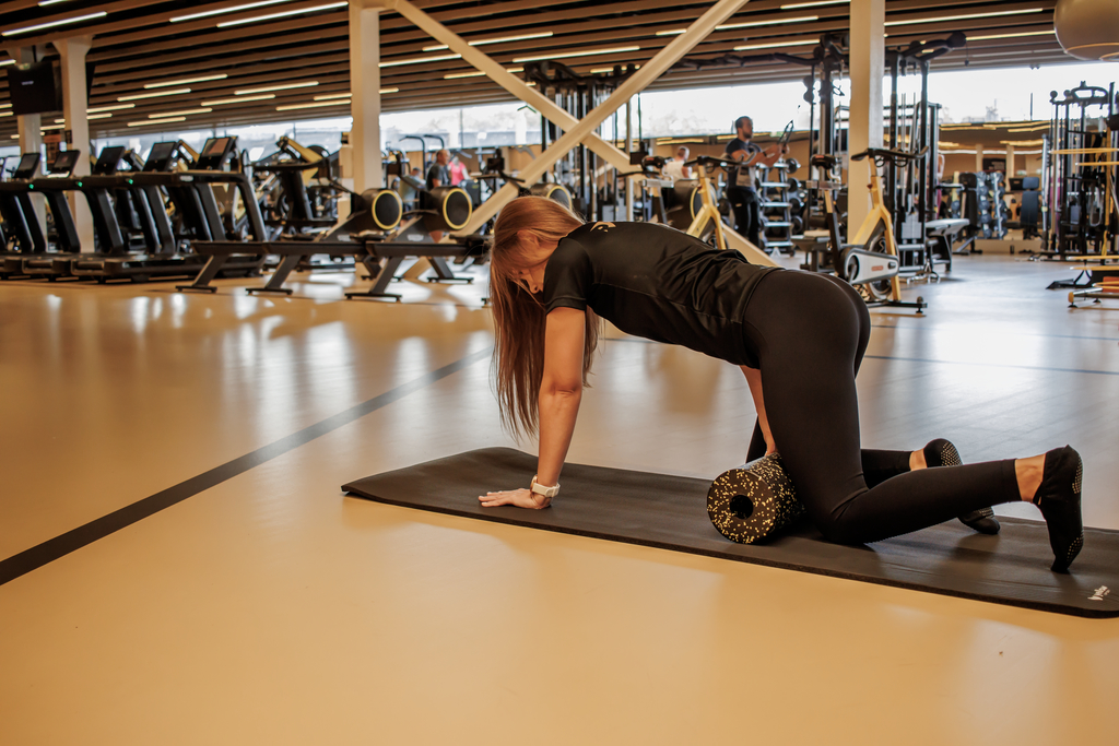 - W podporze przesuwamy się w górę i w dół na rollerze, zachowując nacisk.