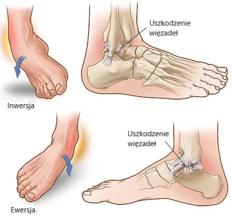 Urazy skrętne stawu skokowego stanowią ok. 25% wszystkich urazów sportowych. Najczęściej stwierdzane są skręcenie inwersyjne, powodujące uszkodzenia więzadeł kostki bocznej: